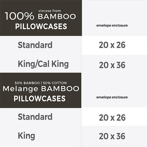 Set Includes: 2 pillowcases with 8" envelope flap closure: